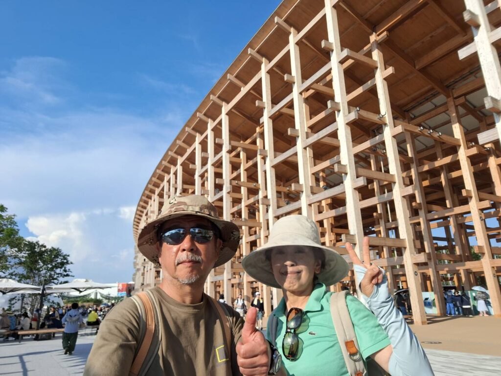 大屋根リングから沢山のパビリオンを見下ろしながら